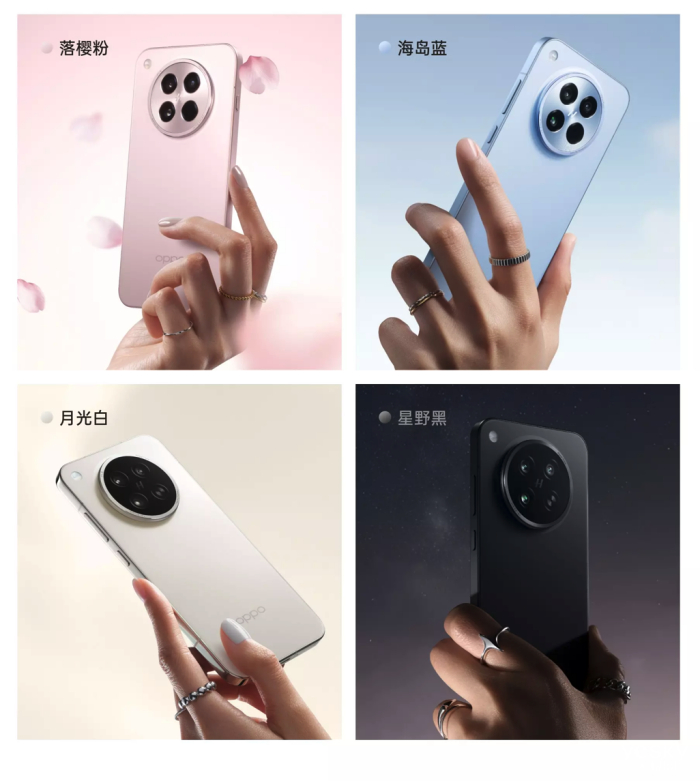 OPPO Find X8s 提供星野黑、月光白、落樱粉、海岛蓝四款。其中海岛蓝配色以水波光影背板将海岛晨雾的氤氲感融入到机身当中,温柔且舒服,搭配直角边框设计,精致感与灵巧感满满;OPPO Find X8s+在星野黑、月光白配色的基础上还有一款风信紫,基于防指纹镀层与丝绸雾面观感的结合,呈现从薄雾紫到霞光粉的朦胧渐变,让纯粹的美更显精致感。
