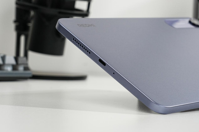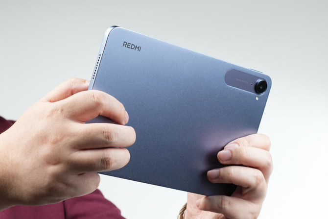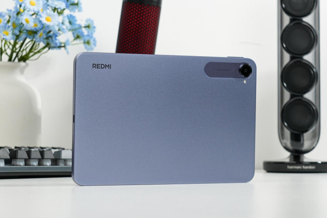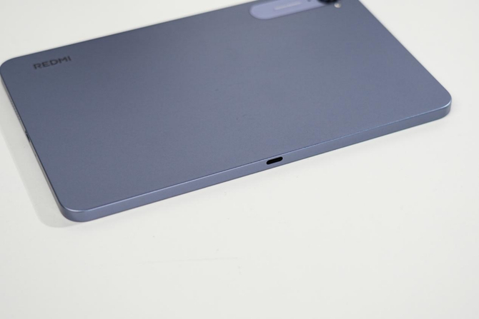 同时背面的话,这款平板的也非常简洁,仅有一个摄像头,并且没有多余的DECO设计,同时左上角为REDMI的品牌logo。