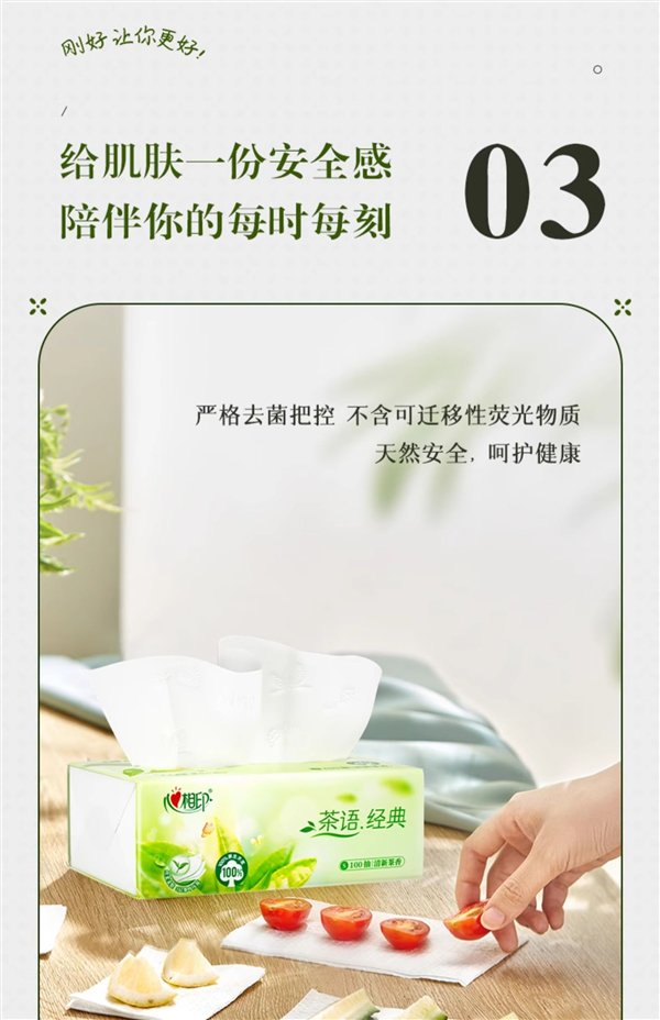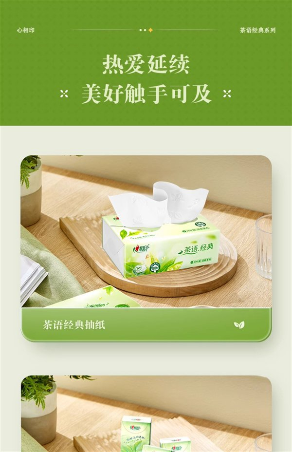 原生木浆制造 心相印茶香抽纸新低:24.8元到手24包