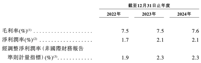 尽管一年收入近400亿,但量贩零食并非大家想象中的高毛利生意,鸣鸣很忙的毛利率和净利润率并不高,其中2024年毛利率为7.6%,净利润为2.1%,低于其他零售业态。
