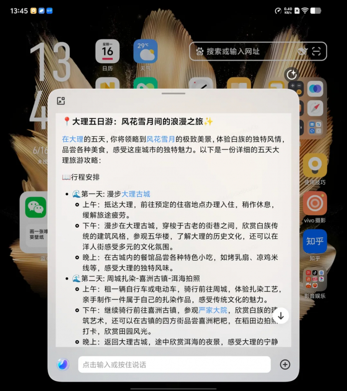 以 vivo 蓝心小 V 为例,不论是规划 “大理风花雪月浪漫 5 日游”,还是根据往年录取分数推荐高校,各类个性化需求都能迅速响应; “即圈即搜” 功能更打破传统搜索边界,用户在界面中划线或圈选屏幕内容,就能快速获取信息,比如识别猫咪品种、陌生地标、人物信息等。