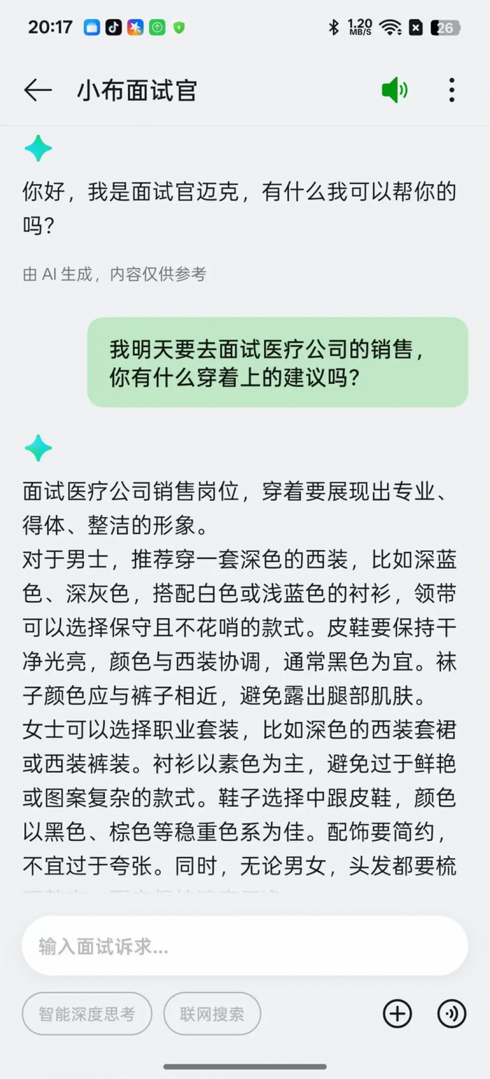 除通用问答与搜索之外,OPPO通过与火山引擎的深度合作,在小布助手中集成了多款AI智能体。比如,AI面试官能够在用户求职前提供简历优化建议,并通过模拟面试进行实战演练,帮助用户提升面试表现;AI英语老师则支持口语对练,为用户带来更高效便捷的语言学习支持。得益于火山引擎在大模型技术上的支持,AI智能体不仅功能更加多元,交互也更加自然流畅,能够为用户提供真人对话般的沉浸式体验。