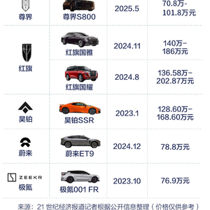 2023年之后,越来越多的国产品牌冲入百万级市场。仅2024年下半年到2025年6月,至少有4款百万级国产超豪华车亮相,包括红旗国耀、红旗国雅、尊界S800和极氪9X。