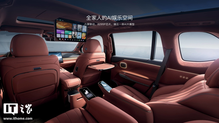 座舱方面,该车配有双 17.3 英寸 3K 巨幕屏,配备骁龙 8295 芯片,配备全 24 通道前后三分频音响、零重力湾流座椅。车机支持暗夜环视功能,同时接入了 DeepSeek AI。此外,该车标配 18 点热石按摩,支持 3 种按摩力度。