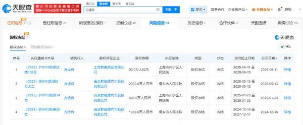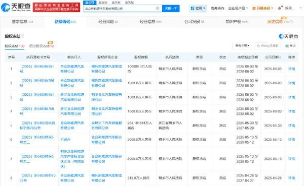 合众新能源新增的破产案件中,申请人为上海禹形广告有限公司,经办法院为浙江省嘉兴市中级人民法院,管理人机构是浙江子城律师事务所,此前上海禹形广告已申请该公司破产审查。风险信息显示,目前合众新能源现存100条股权冻结信息,创始人方运舟更是有多条股权冻结记录,冻结股权数额合计4676万人民币 。
