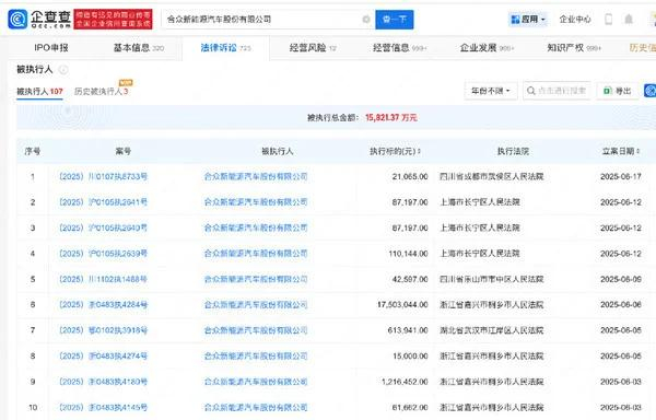 法律诉讼信息显示,合众新能源作为被告的多起案件涵盖产品生产者责任纠纷、金融借款合同纠纷、买卖合同纠纷等。