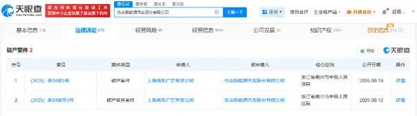近日,哪吒汽车关联企业合众新能源汽车股份有限公司陷入系列风波。天眼查信息显示,该公司近期新增破产案件,同时创始人方运舟股权遭冻结,且作为被告的多起案件即将密集开庭 。