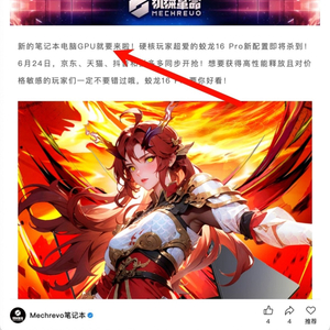机械革命蛟龙 16 Pro 游戏本新配置预热:6 月 24 日多平台上市