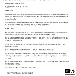 微软在本周更新的支持文档中,承认该问题影响 Windows、安卓版、iOS 版和网页版 OneDrive,并承诺会尽快修复该问题。