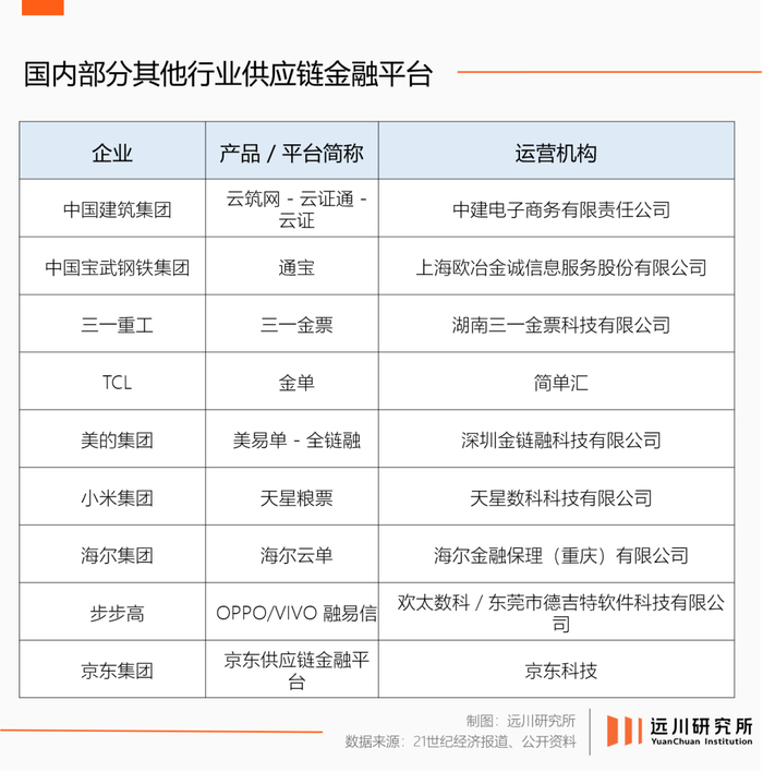 而除了汽车工业,各行各业头部公司基本都有自己的供应链金融平台。据统计,目前国内拥有各类供应链信息服务平台已超500家,年累计确权签发规模在4万亿至5万亿之间[4]。