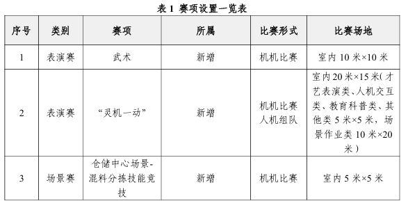 在此基础上,第二批竞赛内容新增 3 个主体赛项,包括“武术”“灵机一动”表演赛 2 项,“仓储中心场景-混料分拣技能竞技”场景赛 1 项,外围赛事新增自由搏击和群体舞蹈 2 个赛项。