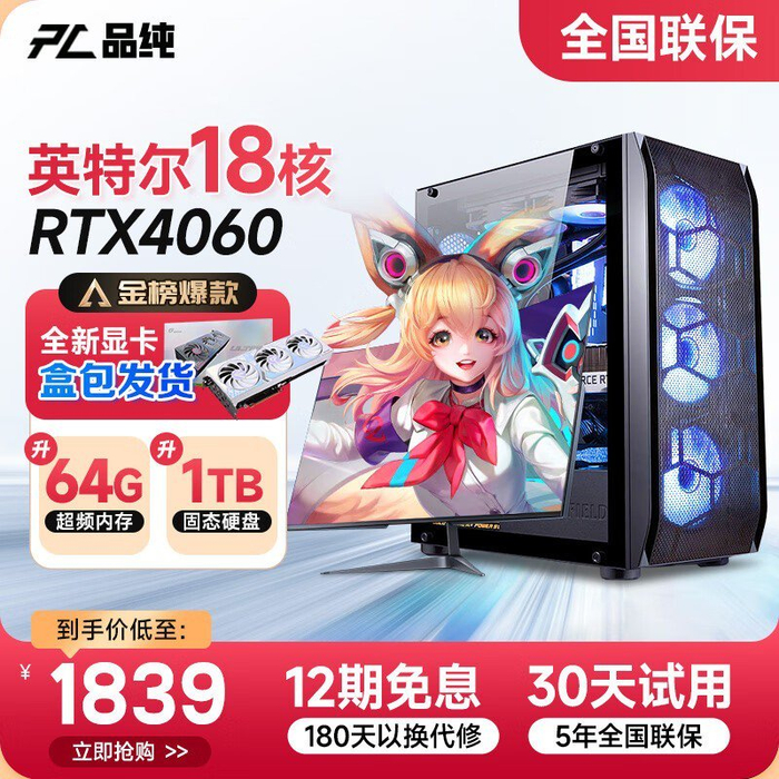 品纯英特尔RTX4060独显水冷主机+32英寸显示器套装限时特惠