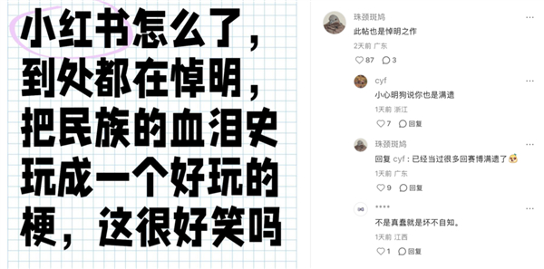 在厌恶的狂潮中,有人开始怒了。因此,如今开始出现不少呼吁停止悼明的帖子。