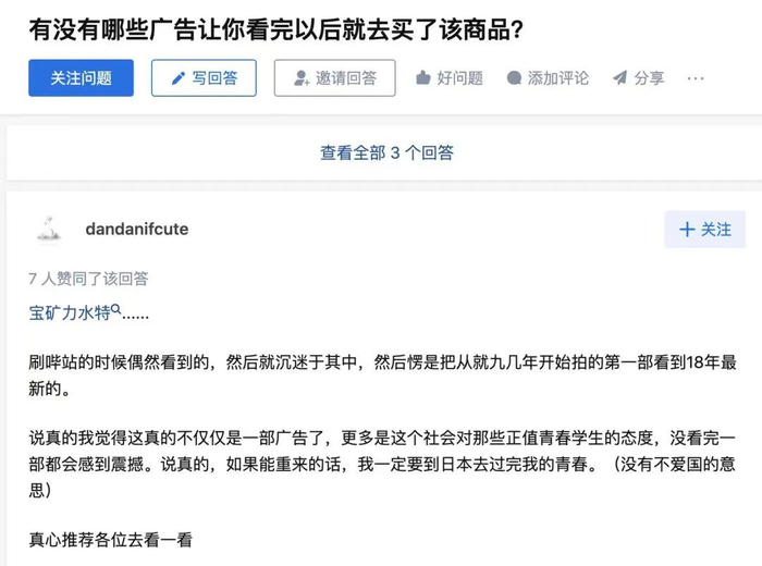 知乎上曾有人问,“有没有哪些广告让你看了就想买?”高赞回答第一就是宝矿力水特。