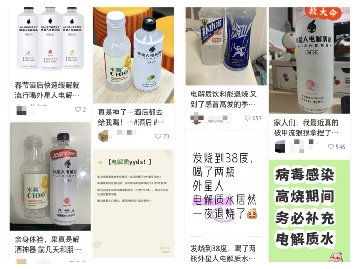 一些高阶玩家,解锁出电解质水的各种隐藏技能,用电解质水减肥、治痛经、调酒等帖子,发网上就是流量密码。