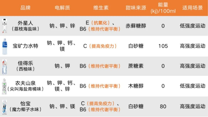 比如元气森林的外星人主打加减有度:减掉白砂糖硬刚宝矿力,添加了维生素E、维生素B等营养素,主打一个“营养打爆”。