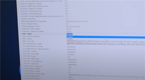 快科技6月23日消息,油管博主JayzTwoCents最近意外发现,Intel处理器+NVIDIA显卡平台上,Resizable BAR并没有默认开启,而手动打开后可以带来大约10%的性能提升。
