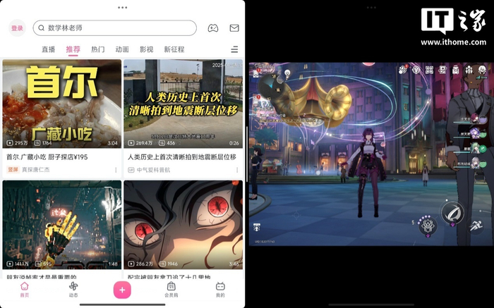 而如果选择独立浮窗显示,游戏则会按比例缩小到桌面上,如果是在分屏模式下使用,另一侧的应用则会代替桌面以全屏显示在下方。