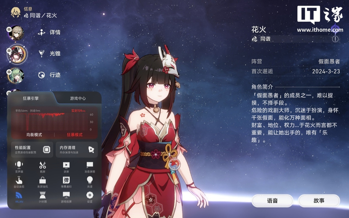 下面我们就通过游戏实测,来看看 REDMI K Pad 的游戏体验究竟怎么样。首先是《崩坏:星穹铁道》,由于体验时间非常紧张,测试均采用 15 分钟固定时长,所有游戏均在游戏侧边栏中开启狂暴模式。