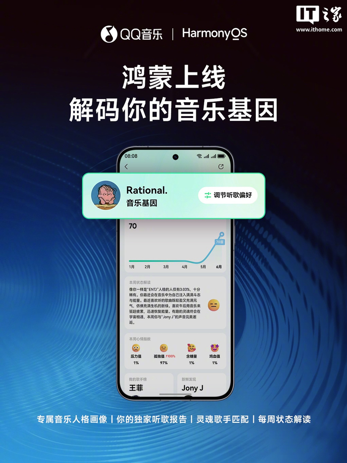 音乐基因报告勾勒用户的音乐人格,趣味解码听歌偏好、灵魂歌手、每周状态等;