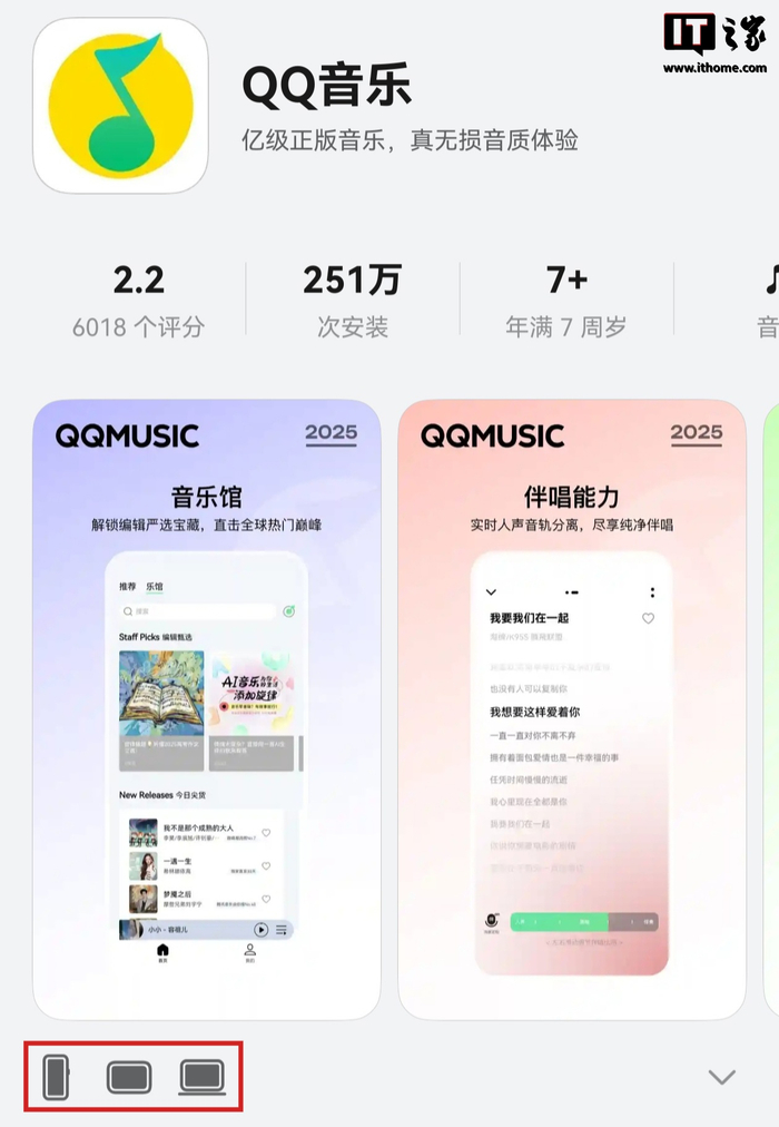 IT之家查询获悉,QQ 音乐鸿蒙版更新至 2.0.0.8 版本,安装量破 251 万、评分 2.2(6018 个评分),已适配鸿蒙手机、平板、电脑设备。