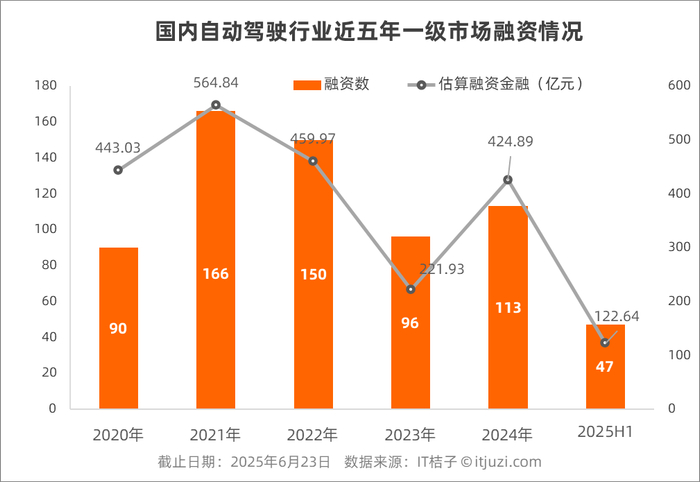 据IT桔子数据显示,近五年来,国内自动驾驶行业是属于比较热门的投资赛道,尤其融资金额高企,2021 年最高达 564.84 亿元,每年平均达400亿元以上,远超一般的科技行业。
