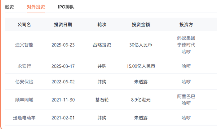 新公司由上海云玚企业管理咨询有限公司(蚂蚁集团)、上海钧哈网络科技有限公司(哈啰)、宁德时代旗下宁波梅山保税港区问鼎投资有限公司共同持股,三方首期合计出资超过 30 亿元。