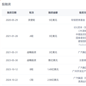 滴滴早在 2018 年就启动自动驾驶研发项目,2020年该项目独立出来融资。曾在2021年宣布了两轮共计6亿美元的融资。