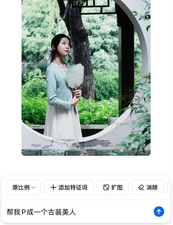 有时候,一张照片只需要对局部元素进行微调,就能达到意想不到的效果。豆包P图的这一功能正好满足了用户的这一需求。比如,输入“换成国风汉服”,照片中的人物就会身着华丽的汉服,尽显古典韵味。