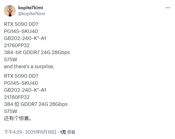 快科技6月24日消息,RTX 5090D作为一款阉割了的特供版,美国政府依然不喜欢把它卖给中国市场,无奈之下NVIDIA再砍一刀,计划拿出RTX 5090DD,最新消息称将在8月份登场,但具体日子待定。