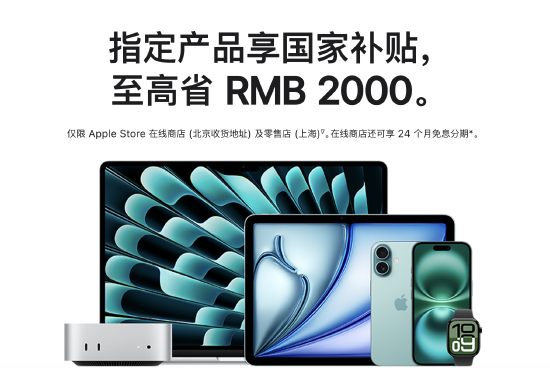 苹果中国推出国补优惠:指定产品最高优惠2000元
