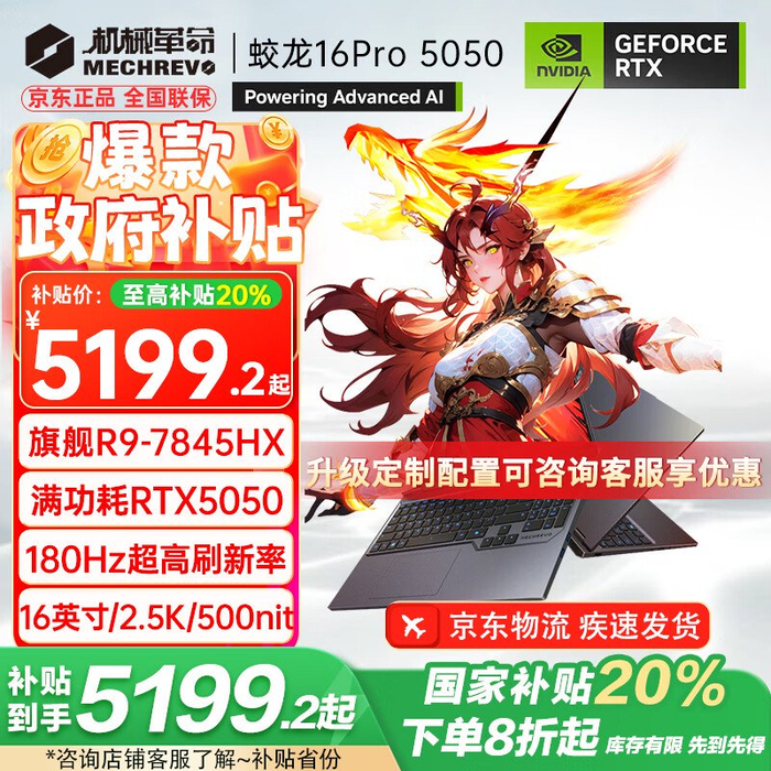 另外,IT之家发现机械革命 RTX 5050 款蛟龙 16 Pro 也已经上架,搭载 AMD R9-7845HX 处理器,配备 16GB 内存,512GB 固态硬盘版本首发价 6199 元(国补 4959.2 元)。