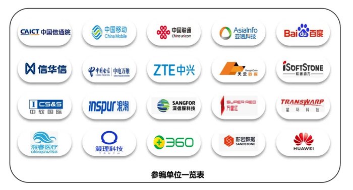 该技术规范由中国信通院牵头,依托中国人工智能产业发展联盟(AIIA),联合360、中国移动中国联通亚信科技百度、信华信、中电万维等20余家单位及40余位专家共同编制。