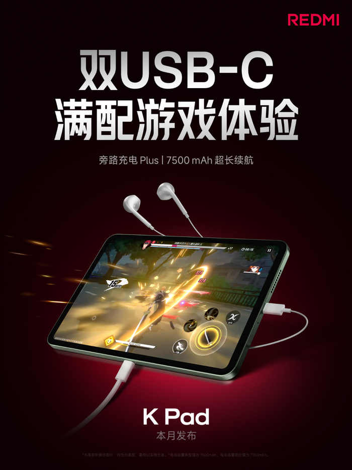 王腾:REDMI K Pad 平板小米首发双 USB-C 接口,支持至高 USB 3.2 Gen1 协议