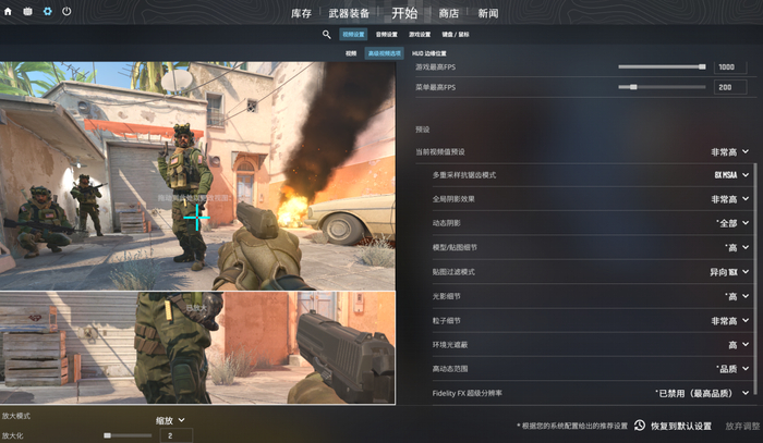 在CS2游戏中,画质我们分别选择了预设不同档位,分辨率设置为1080P,使用创意工坊的benchmark进行测试。RTX5060在中画质下的平均帧率在350帧左右,此时不论是画面表现还是游戏流畅度其实都还不错,特别是在CS24A这款显示器上体验,更能享受到一种锐利流畅的视觉效果。不过考虑到不少朋友都是冲着这款显示器来的,对于帧率的要求更高,接下来我们使用RTX5060 Ti测试进行测试,此时中画质的帧数来到了400帧左右,而当采用RTX5070进行实测时成绩更是达到了500帧以上,虽然提升比较大。但5070相比5060的理论性能提升将近90%,帧数提升与性能差距并不符合。那么理论性能相较RTX5060提升达到150%左右的RTX5070Ti是否能够达到610帧以上呢?实测在全高画质下,这张显卡能到600帧左右,但是帧数波动比较大,常规架点和烟火爆炸时的帧数表现会有比较大的区别。如果适当降低画质即使是RTX5060也能跑满这款显示器。