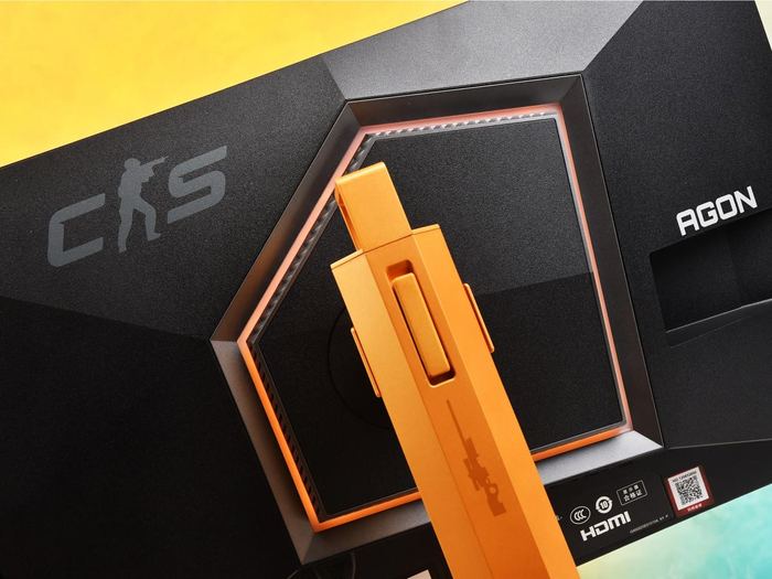 除了在CS2上的出色画面表现,CS24A在外观方面也颇具特色,可以说它的外观设计是专为CS游戏玩家考虑之后的产物,丰富的游戏元素布满显示器及配件上,甚至显示器在开机时的动画上亦有联名logo,让玩家能够迅速融入紧张刺激的对局氛围。