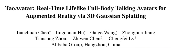 • 论文标题:TaoAvatar: Real-Time Lifelike Full-Body Talking Avatars for Augmented Reality via 3D Gaussian Splatting