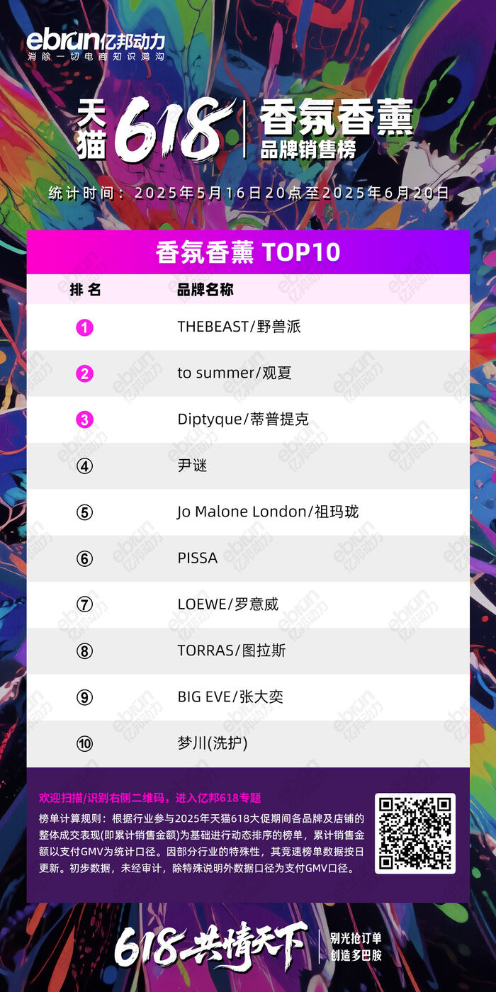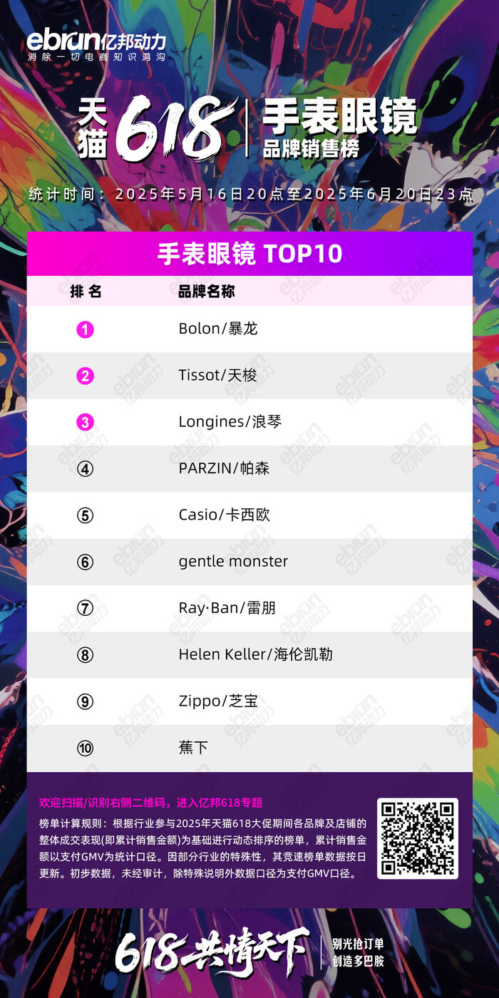 根据天猫首次推出的618成交竞速排行榜,亿邦动力截取了自5月16日晚8点至6月20日23点的排名情况。一起来看哪些品牌成功跻身类目TOP10。