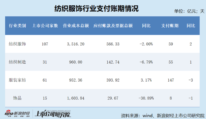 纺织服饰行业平均支付账期71天
