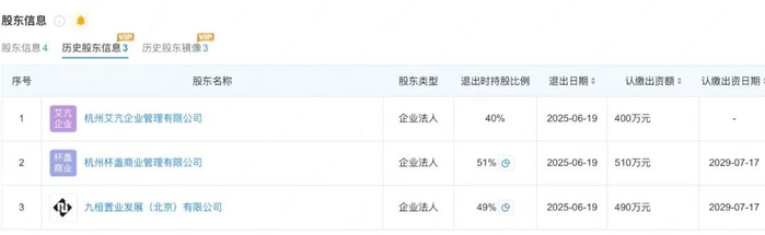 就在何猷君参加产品发布会的前一天,2025年6月19日,王思聪实控的两家企业退出股东名单,寰聚商业的股东名单新增了何猷君名下的公司。简单来说,何猷君的公司代替王思聪的公司成为了寰聚商业的最大股东,与此同时,寰聚商业的董事长从王思聪变成了何猷君。