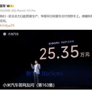 据悉,由于销售火爆的原因,有多名用户在锁单后表示因等待时间过于漫长想要退单。详情点击:又来!继SU7后,多车企销售称愿全数补齐小米YU7退定5000元