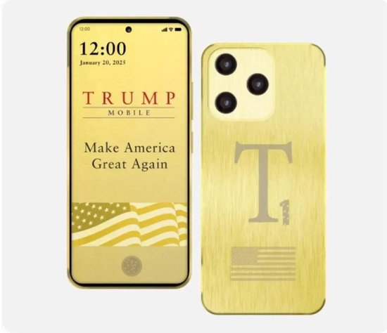 该手机拥有土豪金的外壳、星条旗标志、开机就是“让美国再次伟大”(MAGA)的壁纸,这款名为 T1 的智能手机设计上充满了“特朗普元素”。