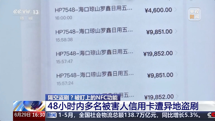 IT之家 6 月 29 日消息,央视今日曝光手机 NFC 盗刷信用卡新套路,报道称北京的张先生收到银行短信,信用卡产生多笔大额消费,累计支出 7 万多元,基本刷光了额度。根据张先生提供的信息,警方抓获了一个 25 人盗刷团伙。