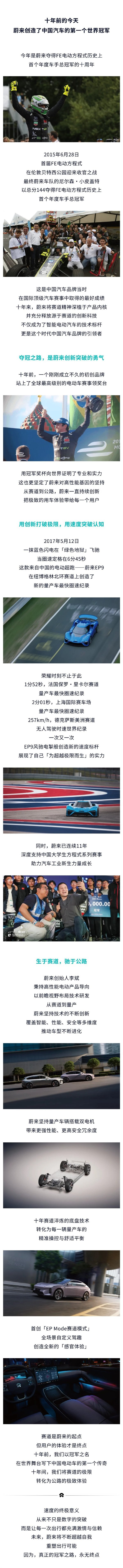 2015年6月28日,首届FE电动方程式在伦敦贝特西公园迎来收官之战,最终蔚来车队的尼尔森·小皮盖特以总分144夺得FE电动方程式历史上首个年度车手总冠军。这是中国汽车品牌当时在国际顶级汽车赛事中取得的最好成绩。