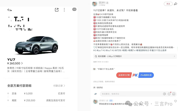 据“三言Pro”透露,在这一背景下,多家车企的销售纷纷伸出“橄榄枝”,表示愿意全数补齐小米YU7退单的5000元定金。