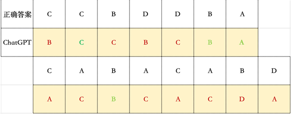 3. 混乱的结果: 在每次看到题目,给定更加精密的提示词的情况下,我们勉强从 ChatGPT 处得到了一组答案,但这个结果参考价值并不大。