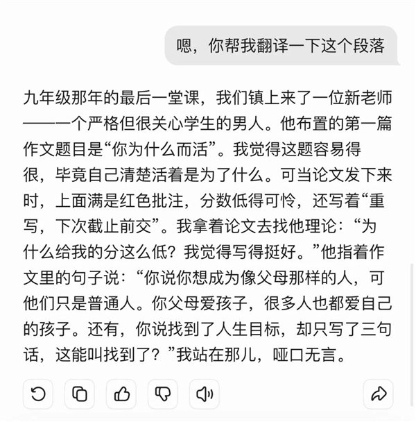 作为所谓大语言模型,语文和英语一向是 AI 的传统强项。