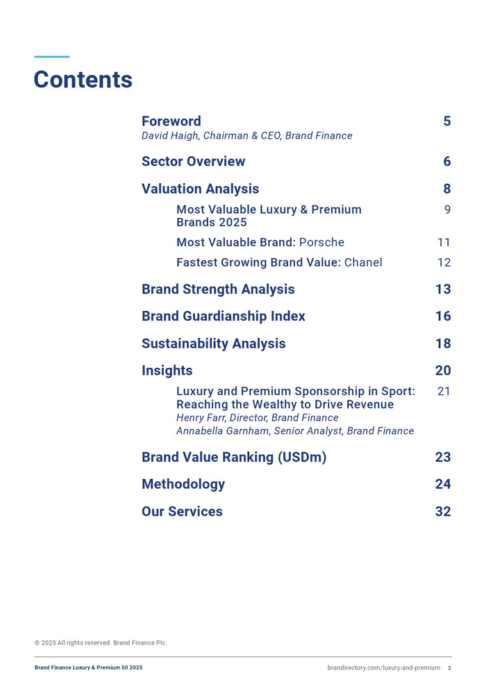 Brand Finance:2025年奢侈品和高端品牌50强