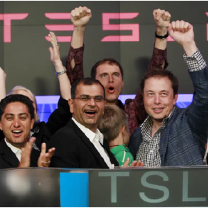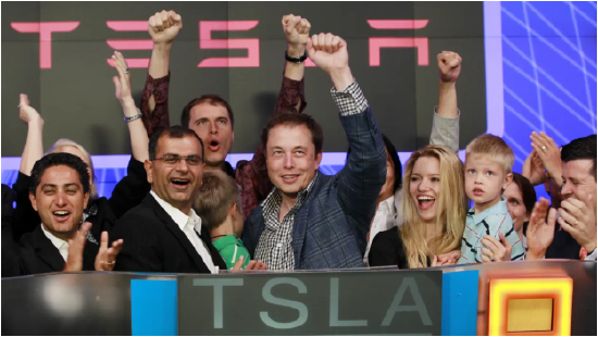 上市钟声响起的时候,马斯克兴奋地高举左手做出胜利的手势。这是他第一次成功带领公司上市。尽管他是PayPal联合创始人和最大个人股东,但早就被排挤出局,PayPal后来的发展和上市都是在彼得·蒂尔(Peter Thiel)领导下完成的,已经淡出公司一年多的马斯克根本就没去敲钟仪式。