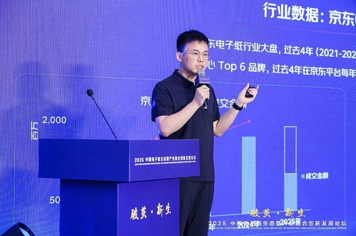 京东电教品类负责人李扬分享了《京东电子纸行业发展趋势和机会》。他提到,京东电子纸产品在过去四年发展良好,复合增长率CAGR4超过了40%,近两年国产品牌的增速更为显著。接下来,电子纸产业将会呈现五大趋势:场景多元,从阅读拓展至教育、办公等领域;彩色化发展,彩色电纸书在京东电子纸平板类目下,占比预计可达20%;政策驱动,国补政策带动消费升级,头部品牌贡献了90%的销量;渠道推动,京东平台线上、线下的全渠道布局,触达了更多消费者,认识并了解、喜爱电子纸产品;AI全面布局,积极拥抱AI,做更智慧的电子纸平板。此外,京东不仅是电子产品线上销售的主要渠道,也是政企采购的主要选购平台,鼓励更多生态在京东共建电子纸产品创新发展机会。